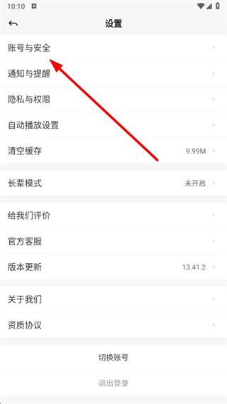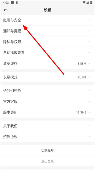 3、在设置界面,找到账号与安全选项并点击,进入账号安全相关配置页面。