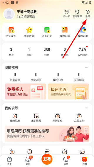 2、在个人页面,右上角找到设置按钮并点击,进入设置页面。