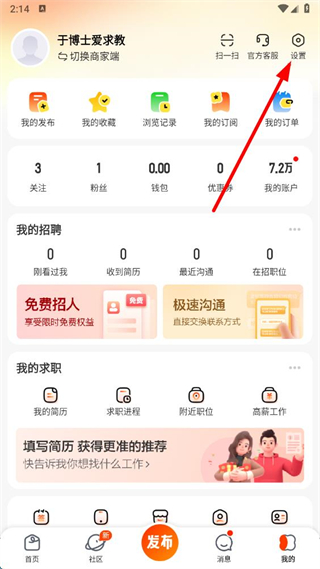 2、在当前页面中,点击右上角的设置图标,进入设置管理界面。