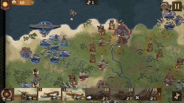 3.带您重返第二次世界大战的战场,成为一名真正的战争将军!这款战争策略游戏让您在六个战区中体验120个真实的历史剧本,挑战您的军事智慧和战略能力